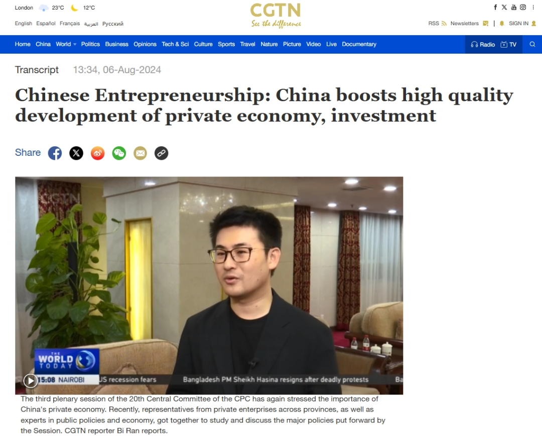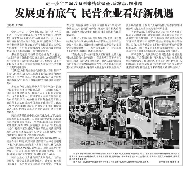 遠(yuǎn)東控股集團(tuán)黨委書(shū)記、董事局執(zhí)行主席兼首席執(zhí)行官蔣承志作為民營(yíng)企業(yè)家代表受到央視國(guó)際頻道、21世紀(jì)經(jīng)濟(jì)報(bào)道、新華社、經(jīng)濟(jì)參考報(bào)等權(quán)威媒體采訪報(bào)道。蔣承志表示,“兩個(gè)毫不動(dòng)搖”再次寫(xiě)進(jìn)《決定》,為民企發(fā)展提供可預(yù)期的政策環(huán)境和更多發(fā)展機(jī)遇,極大提振了民營(yíng)企業(yè)的信心。